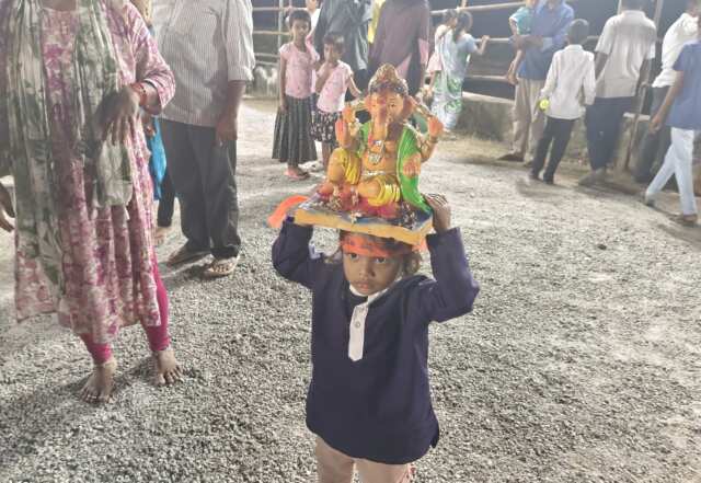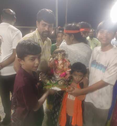 విఘ్నేశ్వరుని నిమజ్జనానికి తీసుకు వెళ్తున్న చిన్నారులు…
